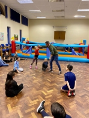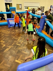 Ryan then joined us for socialising and a game of Killer Pool at Stockport Deaf Sports & Social Club thanks for a great evening! Photos show the children learning football skills and also playing in teams in our blow up football court and nets.